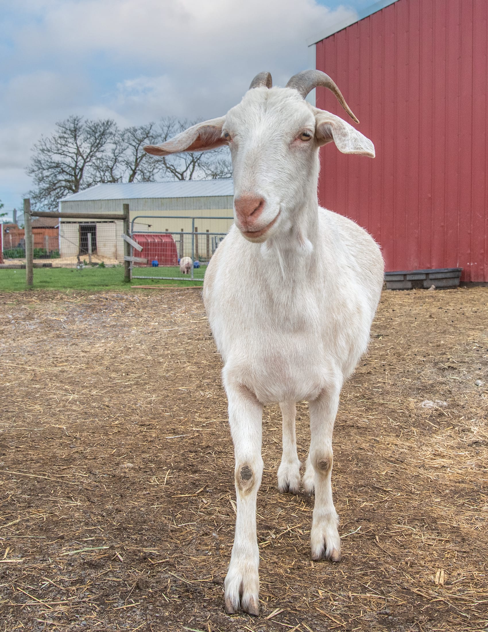 Lemon came to the sanctuary after a local radio station put out a plea for a free baby goat who would be “destroyed” if no one wanted her because she was having trouble bottle feeding Luckily we were able to intervene and bring her to the sanctuary where she’s grown into a healthy, happy goat. She’s gregarious and charming and sometimes very naughty – and we can’t imagine a life without her.